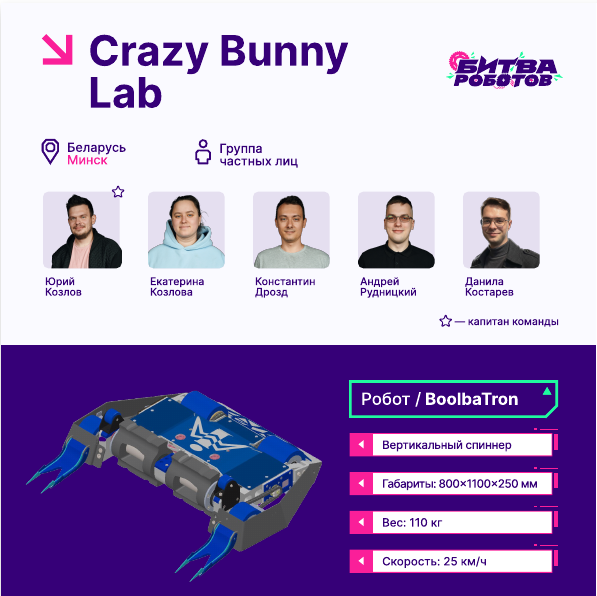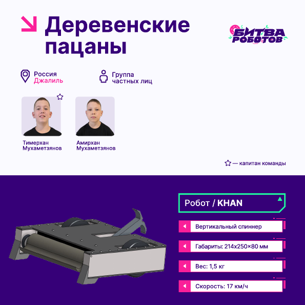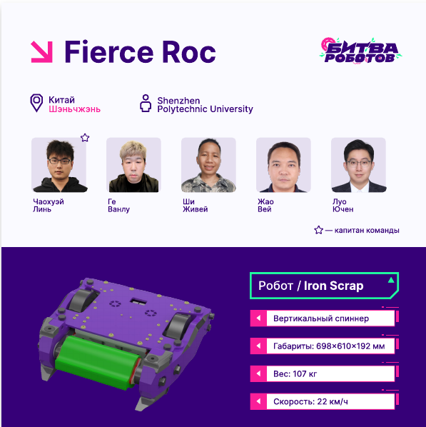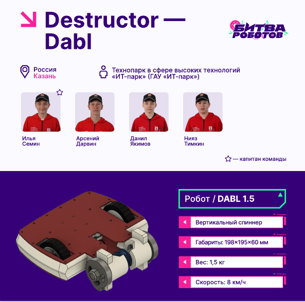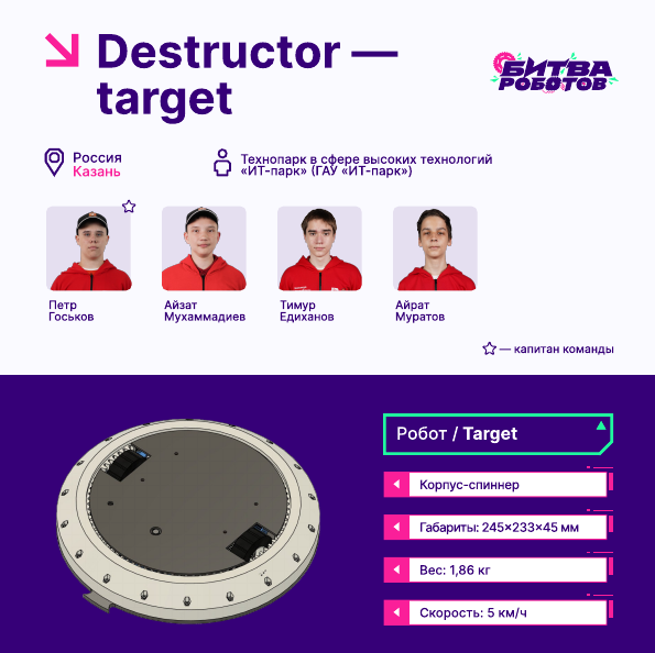 В четвертом отборочном этапе Чемпионата сразятся 28 команд из России, Беларуси, Индии и Китая: 16 команд в рамках дисциплины «Битва роботов» в весовой категории до 110 килограмм и 12 команд в рамках дисциплины «Битва мини-роботов» в весовой категории до 1,5 килограмм. Среди участников – команды МТУСИ, СПбГУТ им. М.А. Бонч-Бруевича, Высшей Школы Нефти, МИСИС, ИТМО, СПбПУПетра Великого, ДГТУ, МИРЭА, НГТУ НЭТИ и других ведущих университетов.